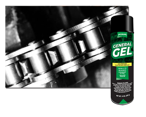 Clear, high-pressure, penetrating lubricant fortified with PTFE. Formulated with natural and synthetic lubrication agents and a high molecular weight polymer to provide dynamic wear protection and water resistance.  Sprays thin for maximum penetration and then sets up into a thick, grease-like gel for long-term friction reduction.  Use on cables, conveyors, chains, hinges, gears, overhead doors, sprockets, winches, pins, levers, rollers, o-rings, and other similar applications.  Proven to perform in marina, water treatment plants, fire departments, amusement parks, street departments, tool rental businesses, hospitals, industrial plants, golf courses, heavy construction, warehouses, food plants, and drilling companies.
