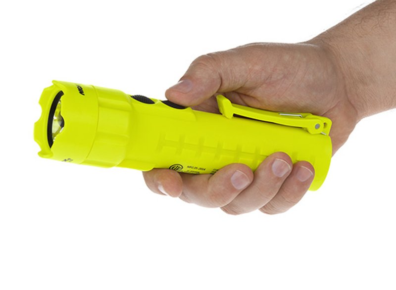 Features: cETLus, ATEX, IECEx, INMETRO and MSHA listed Intrinsically Safe Permissible Can operate as a flashlight, floodlight or Dual-Light™ Momentary or constant-on flashlight, sharp focused 120-lumen beam gives a 170m flashlight beam 120-lumen unfocused floodlight lights up the walking area 240-lumen Dual-Light™ (flashlight & floodlight at same time) for maximum versatility CREE® LED technology, 50,000+ hours LED life Dual body switches Waterproof IP-X7 rated Impact and chemical resistant Built-in pocket/belt clip Includes removable lanyard 3 AA batteries (not included) Limited Lifetime Warranty Product Uses: Emergency services Utility maintenance Tradespeople Airports Security Factory Recovery Hazardous locations Pack and Carton Quantities: Pack quantity/MOQ: Sold individually Certifications: Torch Certifications: cETLus; ATEX; IECEx; MSHA; CE Beacon Certifications: cETLus; ATEX; IECEx; MSHA; CE Downloads: EIT-DL NightStick Intrinsically Safe Torch Specs
